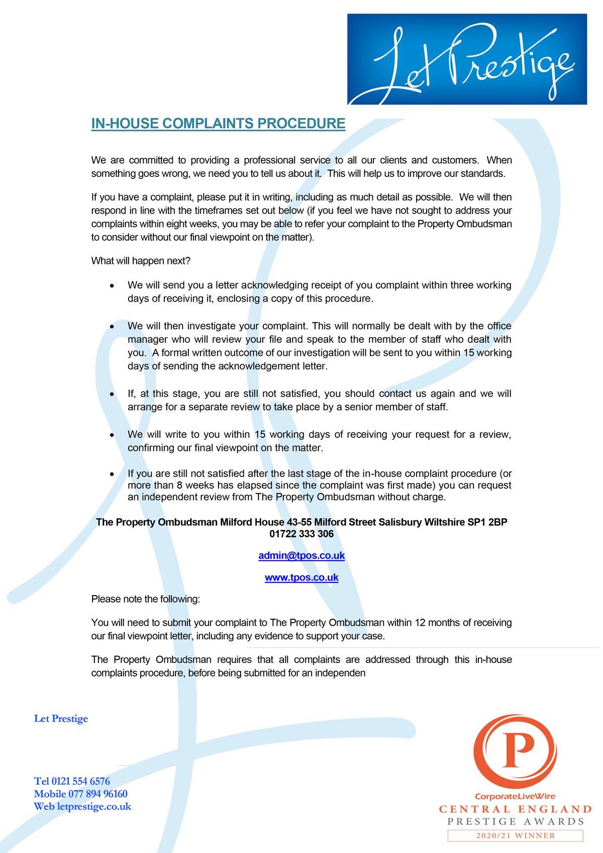 All these points have turned Let Prestige into the fastest growing award winning letting agent brand in Birmingham with a wide range of services to suite our clients for which we have a reputation for the best customer service